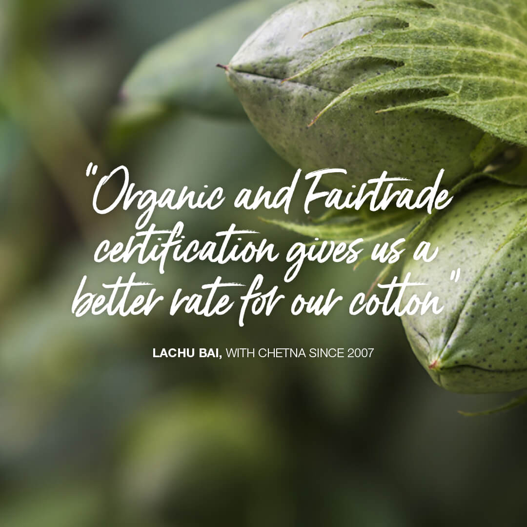 the country’s entire cotton production is organic, so the need to turn things around is still immense. Organic cotton practices include both ecological and social criteria. No fertilizers, synthetic pesticides or GMOs are being used, and every step in the manufacturing chain is traceable. Many of the Chetna farms are both fair trade and GOTS (global organic textile standard) certified, securing improved livelihood while protecting the planet. As everyone involved benefits from cotton being cultivated in a more responsible manner, it all comes down to spreading awareness.