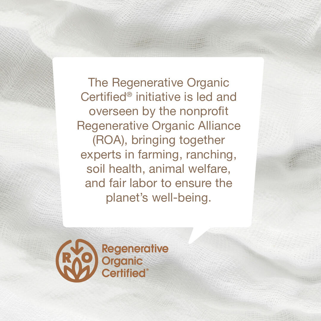 The Regenerative Organic Certified® initiative is led and overseen by the nonprofit Regenerative Organic Alliance (ROA), bringing together experts in farming, ranching, soil health, animal welfare, and fair labor to ensure the planet’s well-being.