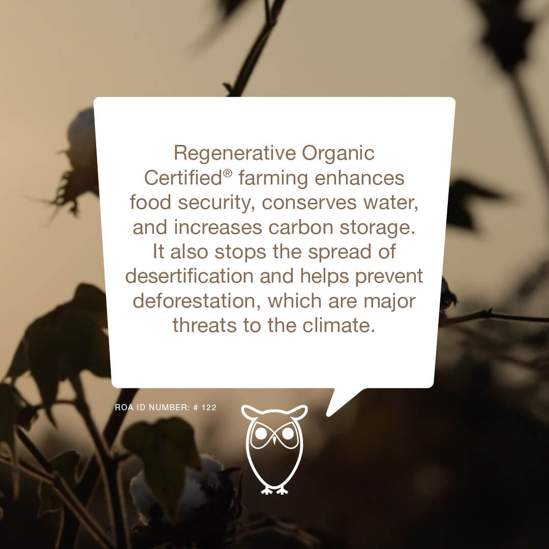 Among many other initiatives, we believe that regenerative organic practices have the power to set the planet on the right course. Our aim is to make all our cotton products 100% Regenerative Organic Certified®.