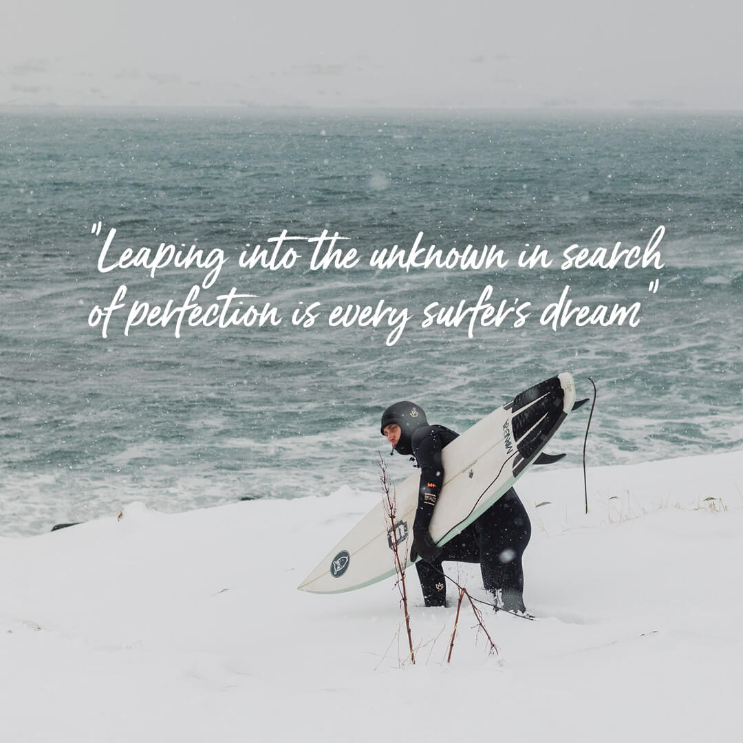 what we hold dear in life, which is chasing adventure and waves. Leaping into the unknown in search of perfection is every surfer’s dream, and the harsh conditions are part of the charm. Where there’s a will there’s a way.